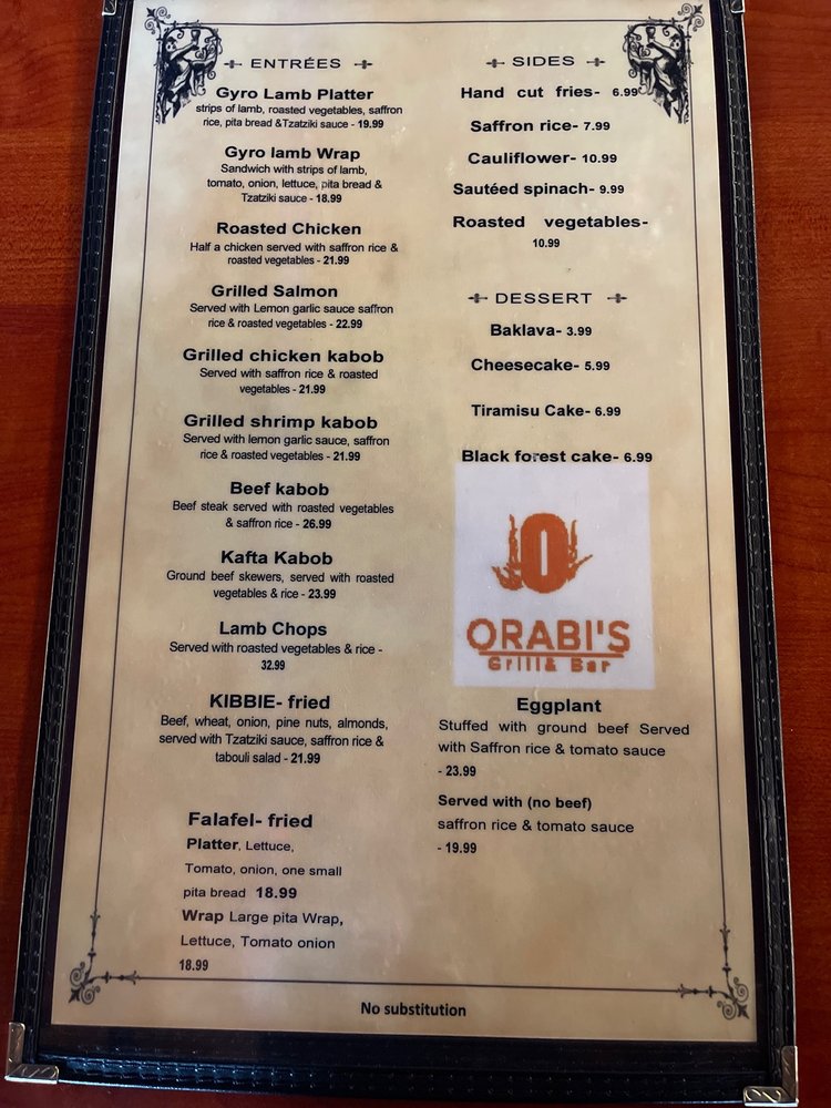 Orabis Mediterranean- Greek Restaurant Menu (Update 2025)